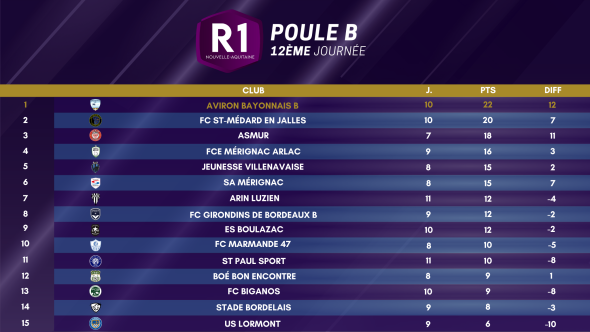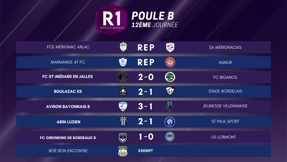 Les supporters locaux de la poule B ont dû repartir du stade heureux, avec 100% de victoires à domicile sur cette journée ! Le FC Saint-Médard-en-Jalles enchaîne avec une troisième victoire de suiteet gagne encore une place au classement. En s’imposant 2-1 face au Stade Bordelais, l’ES Boulazac gagne 3 places d’un coup, comme l’équipe réserve du FC Girondins de Bordeaux.