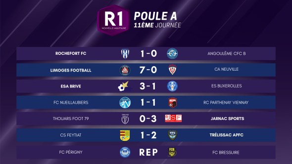 Avec sa victoire contre Feytiat, Trélissac APFC (en photo) s’octroie une 10ème victoire de rang en 10 matches joués, et conforte encore et toujours son statut de leader de lapoule A! Pour son cinquième match sans défaite (et une jolie victoire !), le Limoges Football arrive au pied du podium et grimpe de 3 places, tout comme le Jarnac Sports Football qui s’installe en milieu de tableau.