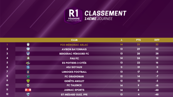 Mérignac Arlac (en photo), Bergerac et l’Aviron Bayonnais Football Club s’imposent chacun de très belle manière. Dans un match plus serré, le Pau FC obtient une troisième victoire de rang, qui lui permet de ravir la 4ème place à Poitiers, défait par Limoges.