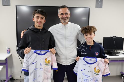 Il a profité de l’occasion pour remettre un maillot dédicacé de la sélection nationale à Roméo Castaneda Nunez et Malo Jourde (Limoges Football), sélectionnés pour participer au Concours Espoirs National Futsal l’an dernier.