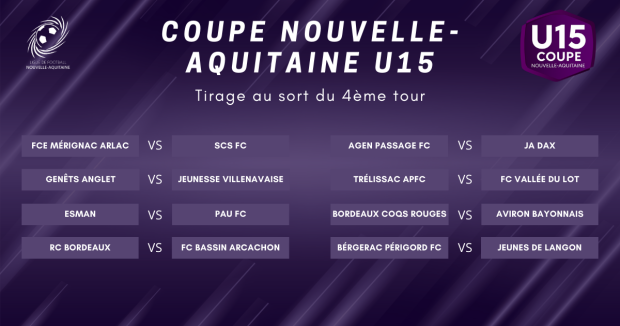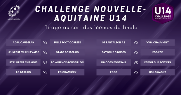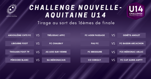 Après trois matches joués, les différentes catégories de jeunes entre U14 et U16 ont découvert leurs adversaires pour la prochaine étape de leur parcours. Les 1/16èmes de finales de challenge U14 et le quatrième tour de Coupe Nouvelle-Aquitaine U15 se joueront le 13 décembre. Les 1/8èmes de finale du challenge U16 prendront quant à eux place le week-end du 7 février.