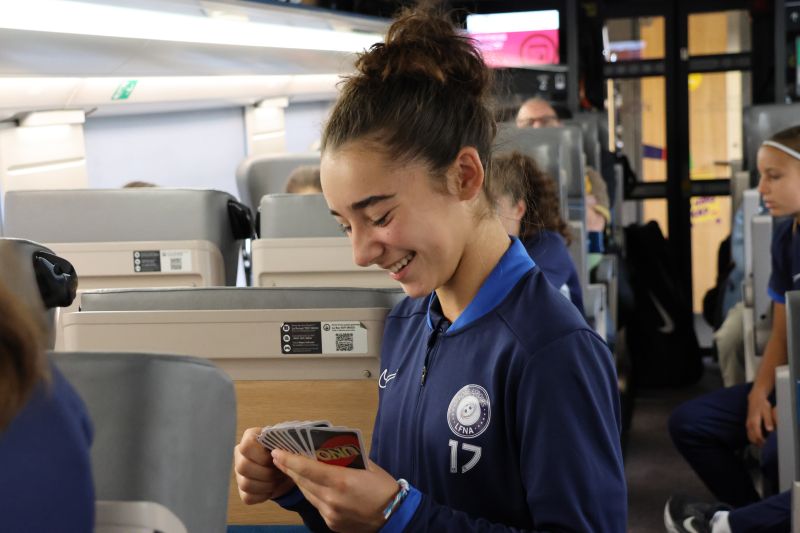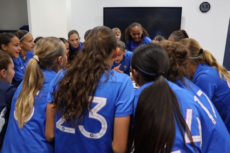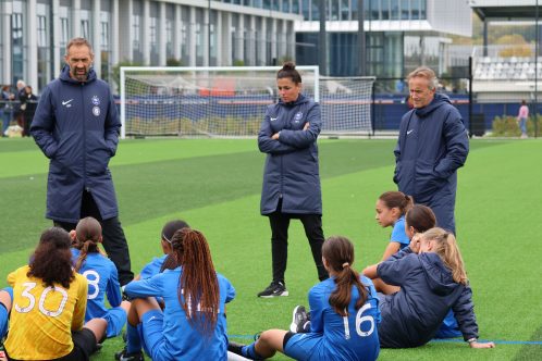 Aussi dense que passionnante, la journée se lance véritablement à l’arrivée au Campus PSG de Poissy, sur les coups de midi. Nos joueuses découvrent les installations avant de prendre la direction du terrain.