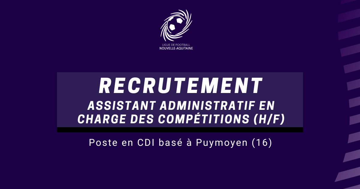 La LFNA recrute un Assistant administratif compétitions (H/F) La Ligue de Football Nouvelle-Aquitaine renforce ses équipes et recrute un·e Assistant·e administratif·ve en charge des compétitions, dans le cadre d’un contrat...
